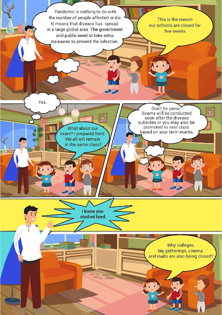 There is growing concern and perceived threat about the Coronavirus among common citizens. The population of all ages is making use of available media such as newspapers, social media and television to make themselves aware. From adults to children, most of the discussion these days are centering around the Coronavirus. But for children, especially those below the age of 14 years, Coronavirus has become al cause of concern as they are not able to comprehend the talks and getting worried. The parent should talk 1o them and resolve their queries so they do not panic. Sometimes parents might be busy and they might not be able to resolve their queries. Considering this PGIMER- Chandigarh, India and Panjab University- Chandigarh, India created this second part of the comic to make children aware about the threat of Corona- virus and clear some of the doubts and how to remain safe through simple precautionary steps. This comic is created to learn, along with fun and motivate children to be a hero of prevention by defeating corona and other infectious germs. Add captionRead More